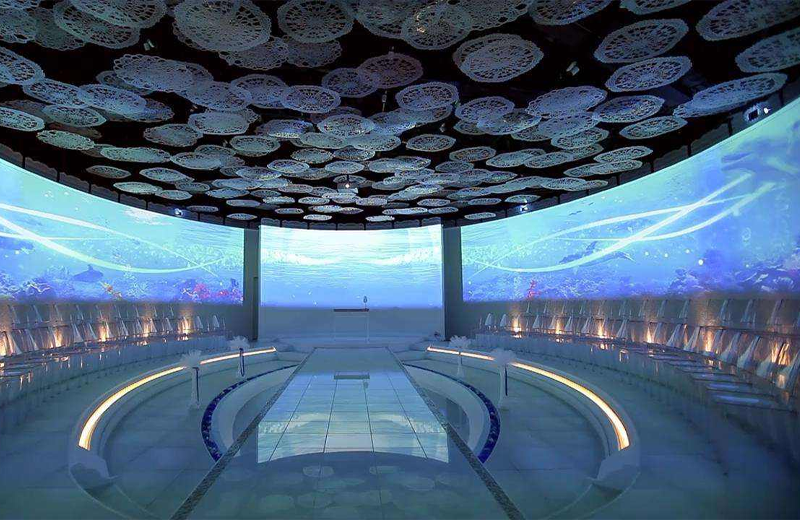 环幕弧幕半径宽大,观众的视觉完全被包围,再配合环绕立体声系统,使参与者充分体验一种高度身临其境的三维立体视听感受,获得一个具有高度沉浸感的虚拟仿真可视环境,是传统平幕显示设备不能比拟的。